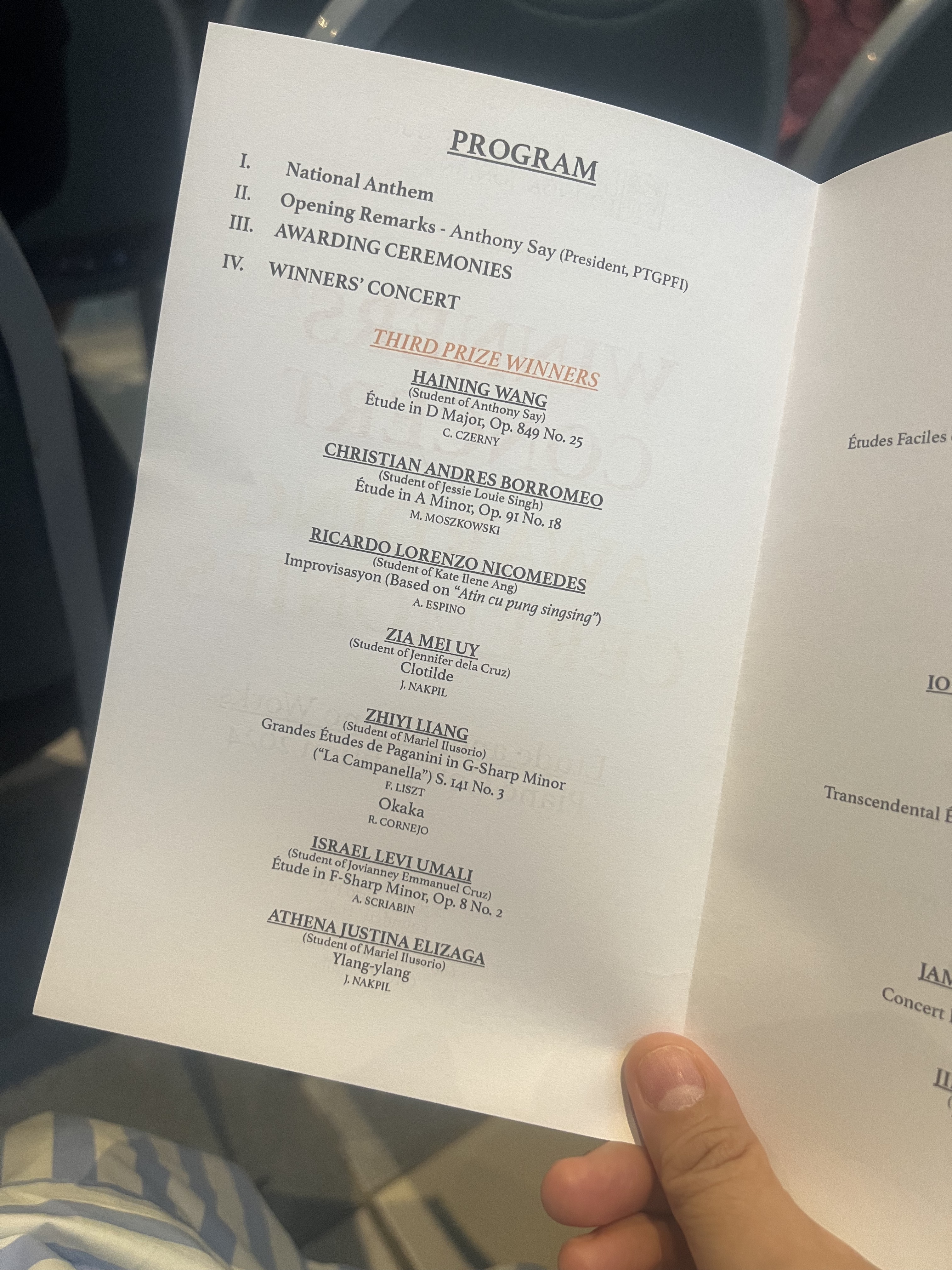 Israel’s love for the piano does not stop with his love of performance, he desires to continue the legacy of classical music alive. He desires to spread love for classical piano in his hometown, Davao City in the future.